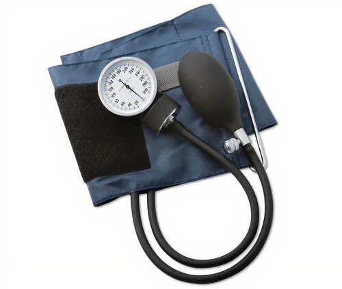 Black enamel 300mmHg no-pin stop manometer. Navy blue nylon D-ring self-adjusting cuff for one-handed cuff application. Latex free inflation bladder and bulb. Chrome plated deflation valve. Complete with leatherette zippered carrying case and operating instructions. Assembled, inspected and packaged in the U.S.A. Ten year calibration warranty.